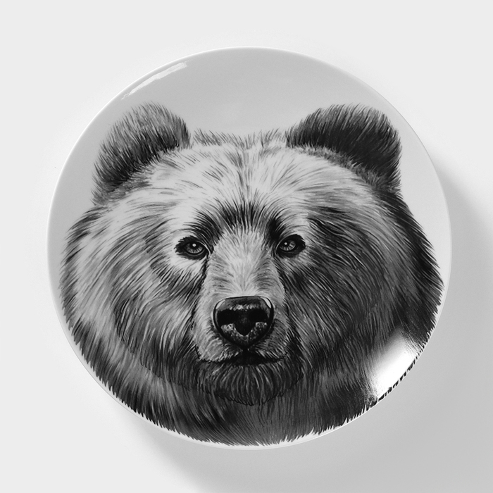 Тарелка фарфоровая «Медведь», d=24 см, белая
