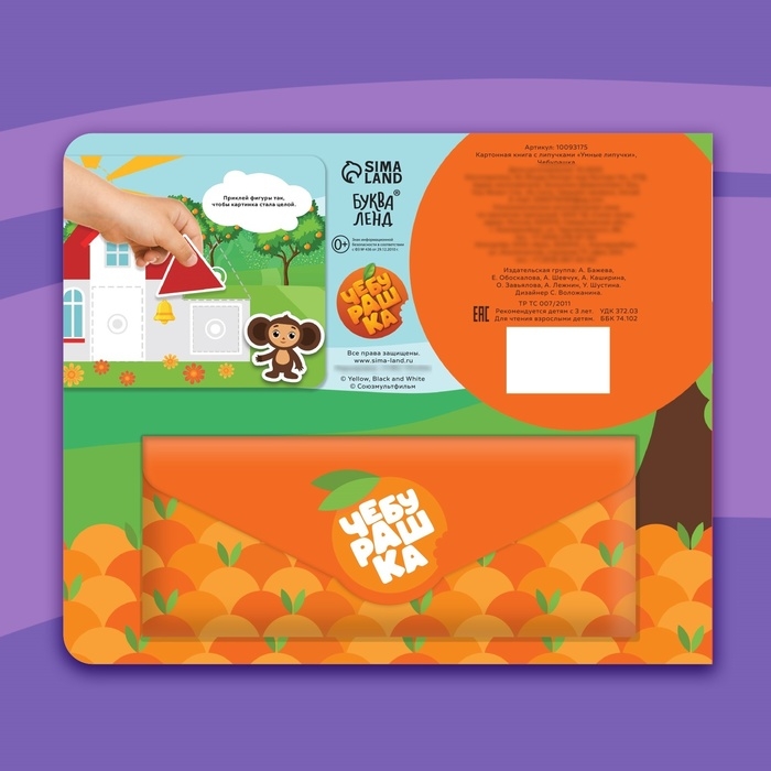 Картонная книга с липучками «Умные липучки», Чебурашка