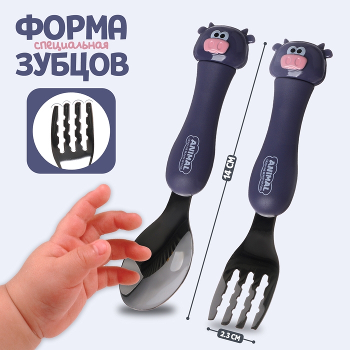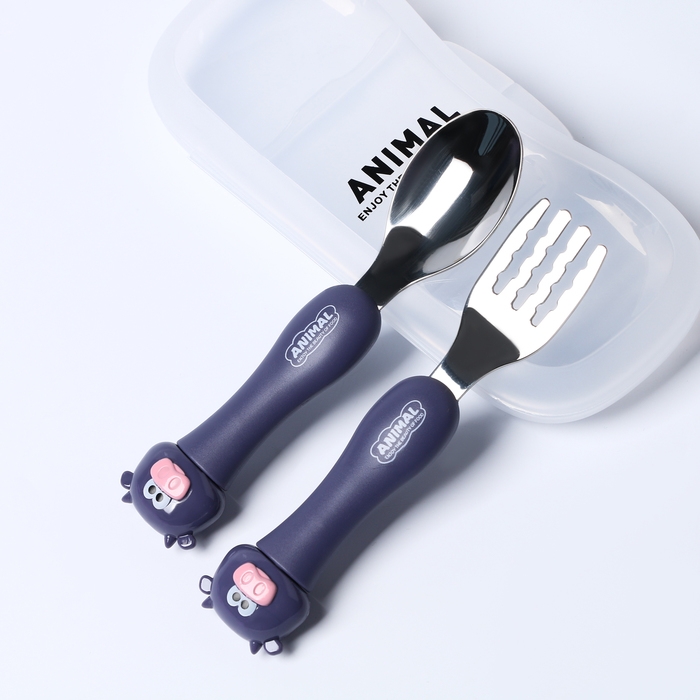 Набор детских столовых приборов в футляре «Коровки», вилка, ложка