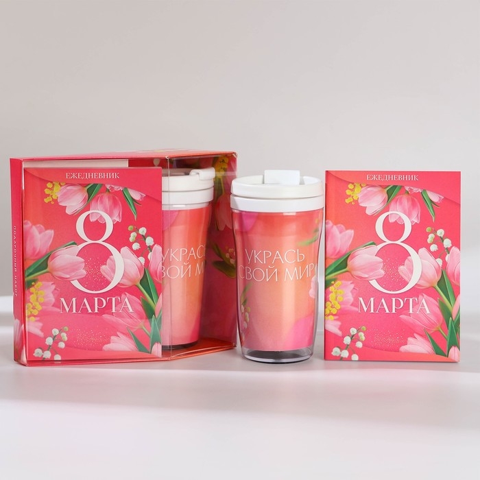 Подарочный набор: ежедневник А6 80 листов и термостакан 250 мл «Укрась свой мир»