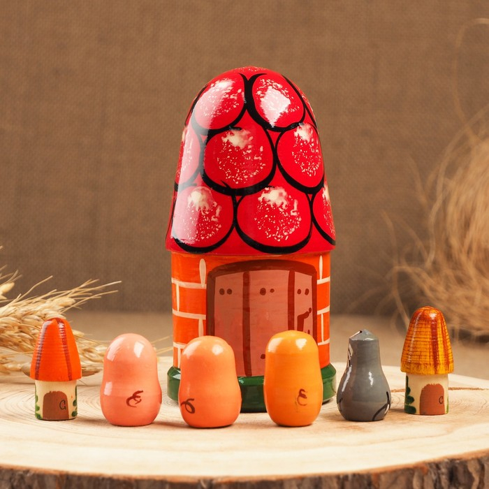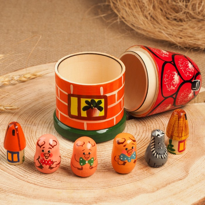 Пальчиковый театр «3 поросёнка», теремок и 6 кукол, 14 см