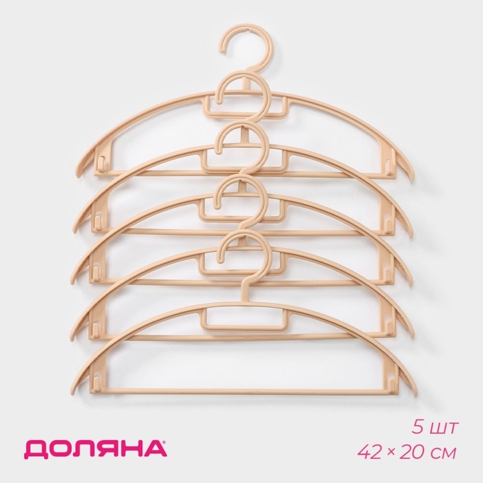 Плечики - вешалки для одежды Доляна, 42×20 см, 5 шт, широкие плечики, держатель для бретелек, цвет бежевый
