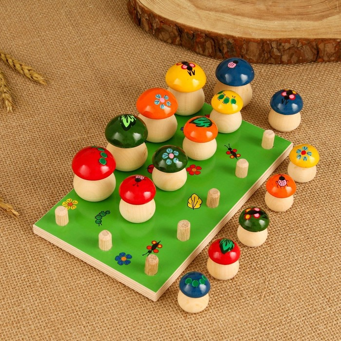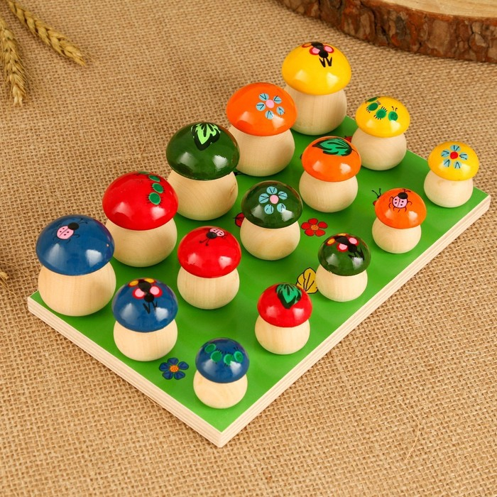 Набор для развития логики «Грибочки», 15 шт по 2-4,5 см, доска 12х24 см