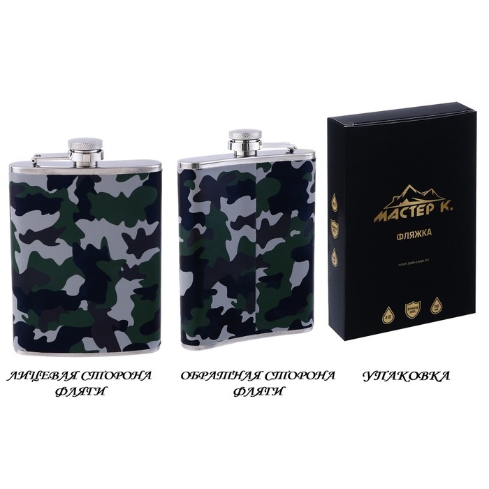 Фляжка для алкоголя "Хаки", нержавеющая сталь, подарочная, армейская, 240 мл, 8 oz