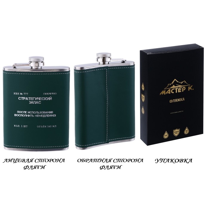Фляжка для алкоголя "Запас", нержавеющая сталь, подарочная, армейская, 240 мл, 8 oz