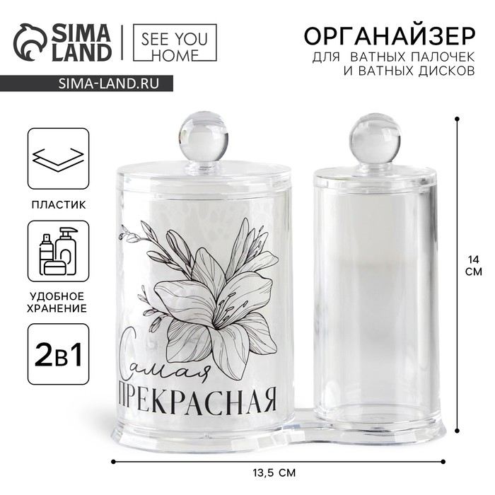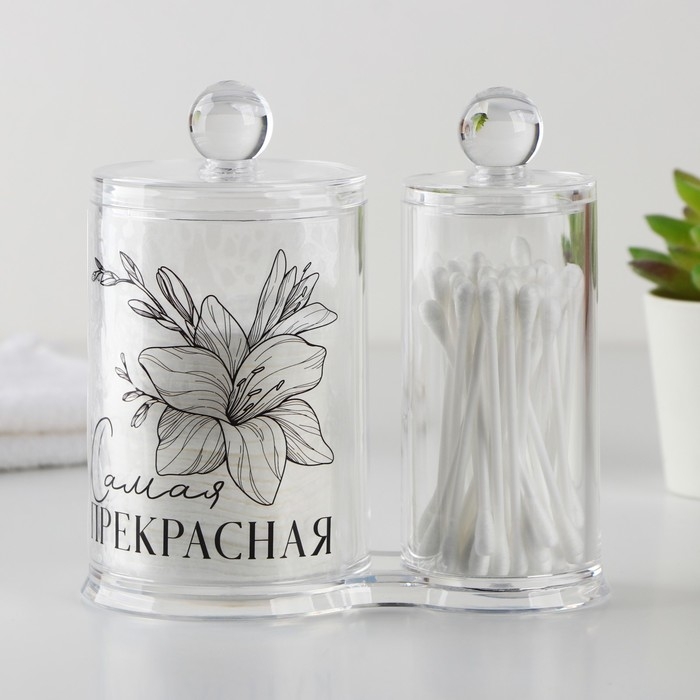 Органайзер для хранения ватных палочек и дисков «Ты прекрасна», 13,5 х 14 см, прозрачный