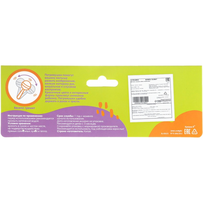 Набор погремушек «Звонкая радость», 5 шт, Крошка Я