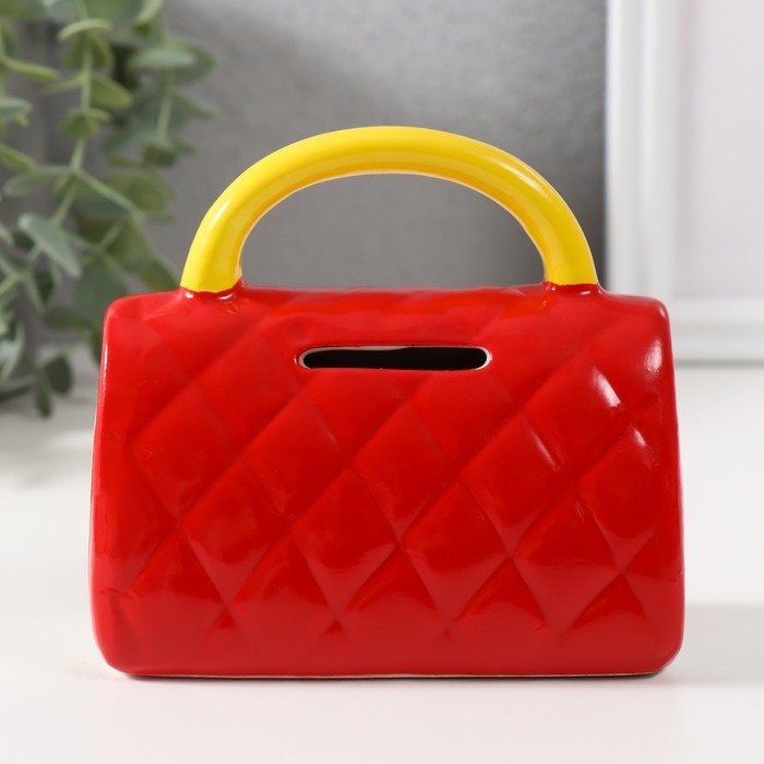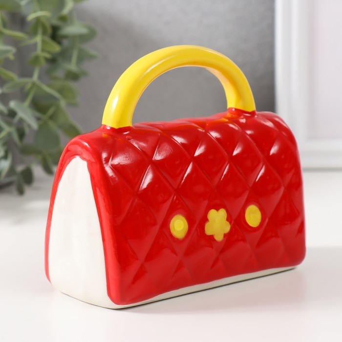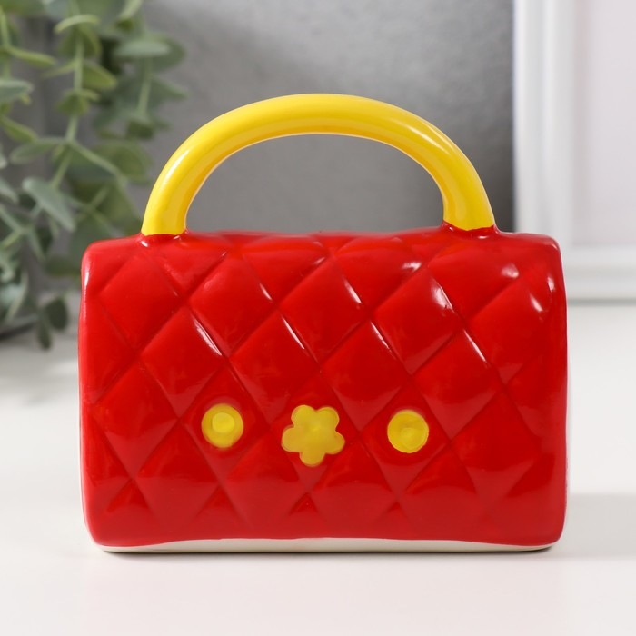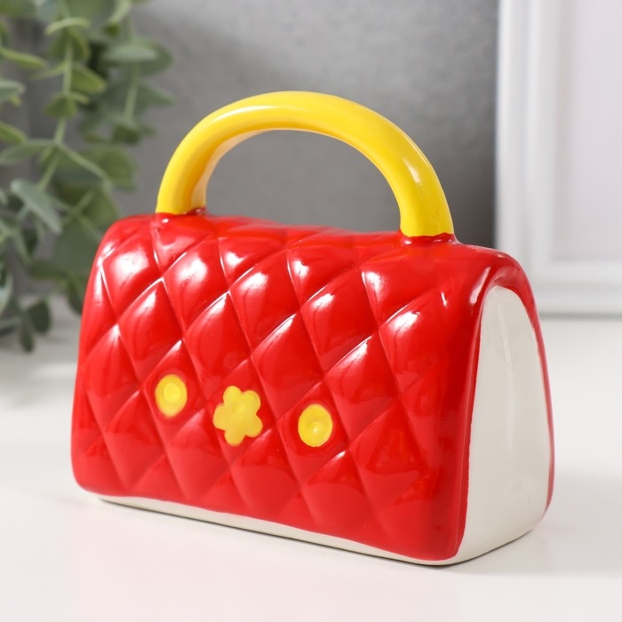 Копилка керамика "Стёганная красная сумочка с цветком" 12х6х10,8 см