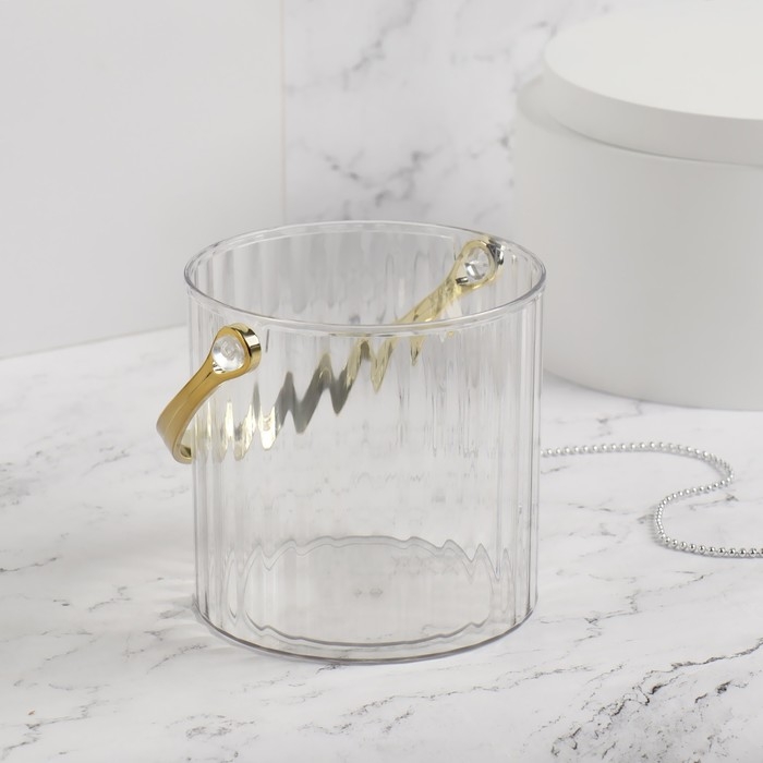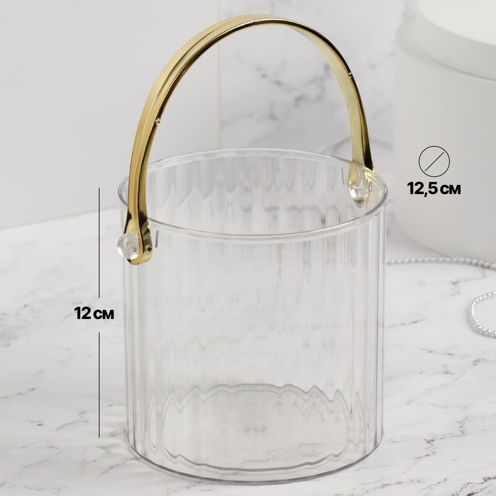 Органайзер для хранения косметических принадлежностей «CLEAN GOLD», с ручкой, d = 12,5 × 12 см, цвет прозрачный/золотистый