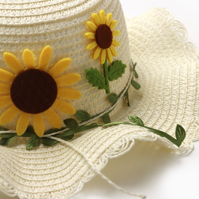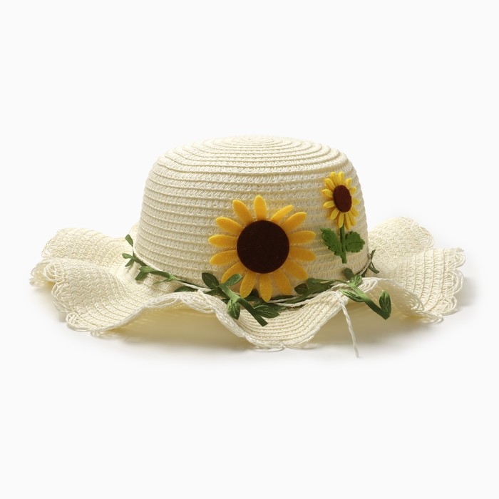 Шляпа для девочки "Подсолнухи" MINAKU, р-р 52, цв.молочный