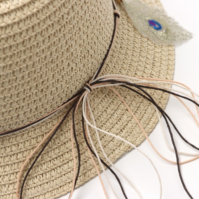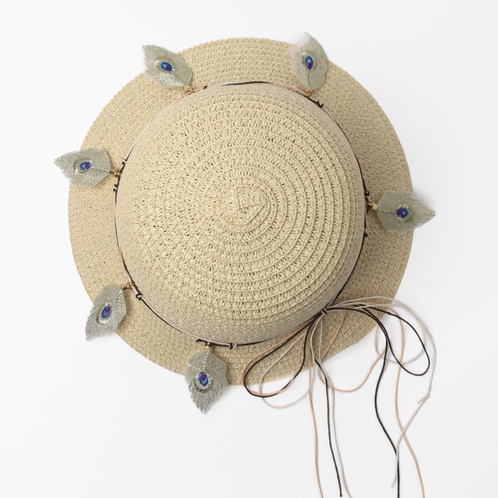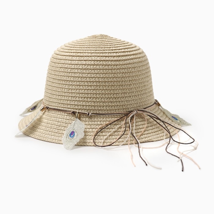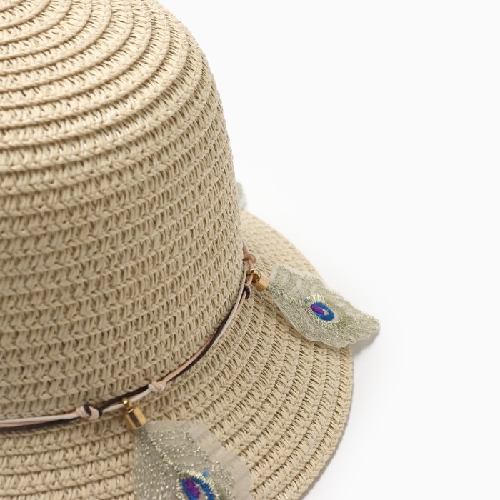 Шляпа для девочки "Перья" MINAKU, р-р 52, цв.бежевый