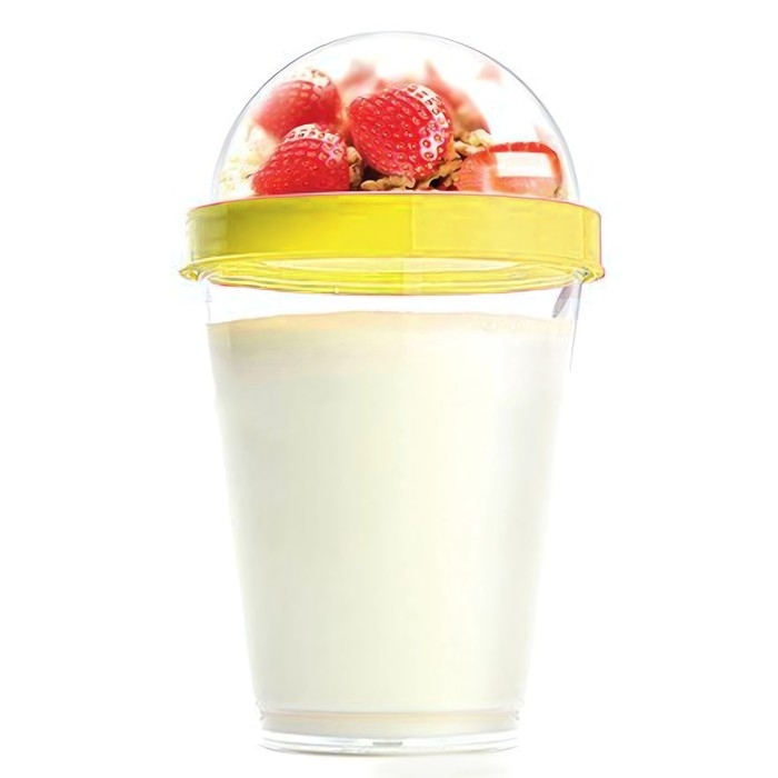 Особенностью этого стакана является то, что он позволяет сохранить свежесть и температуру йогурта на более длительное время, благодаря специальной крышке. Кроме того, он легко моется и не занимает много места в холодильнике.