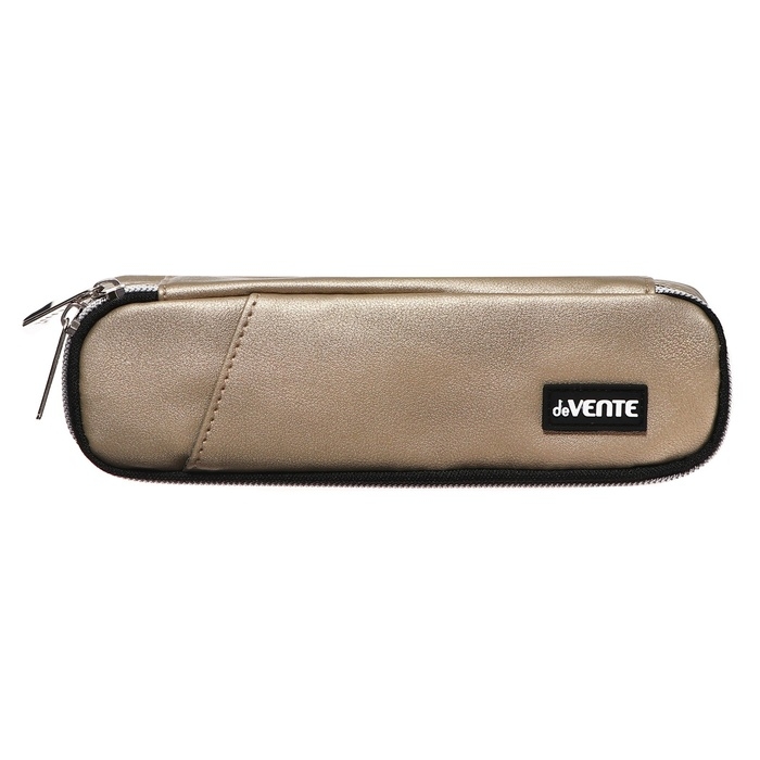 Пенал "deVENTE. Private" 22x6x4 см, овальный для 40 предметов, матовая искусственная кожа до -40C, внешний карман, внутренний карман, с каучуковой аппликацией, золотистый
