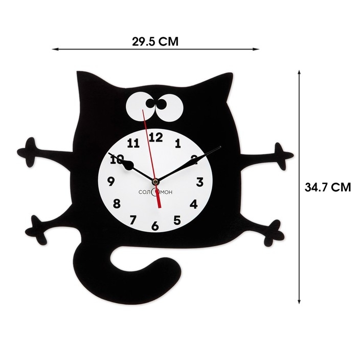 Часы настенные детские "Чёрный кот", бесшумные, 29 х 34 см, АА