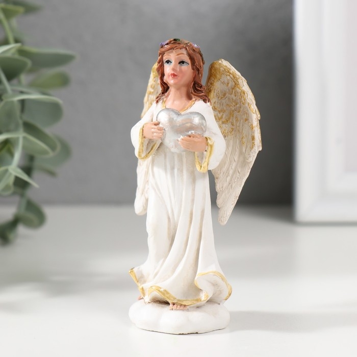 Сувенир полистоун "Ангел-девушка с сердцем" 9х3х4,7 см