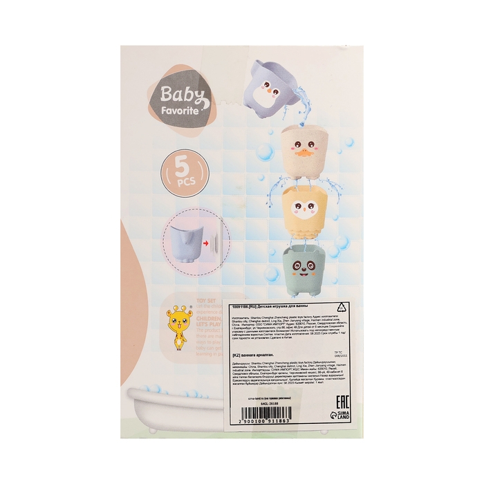 Набор стаканчиков для ванны «Зверята», 5 предметов