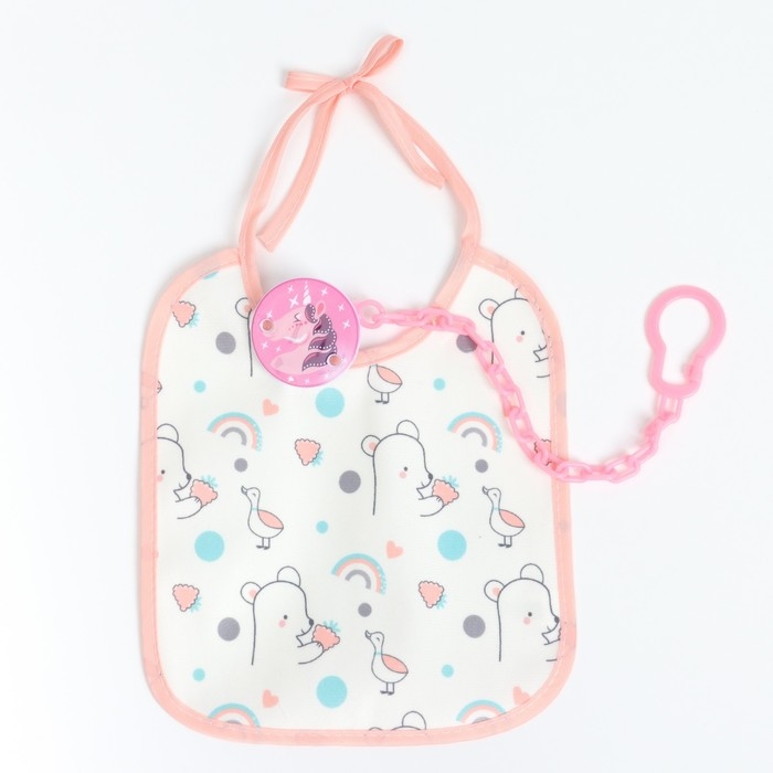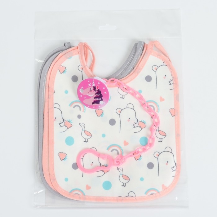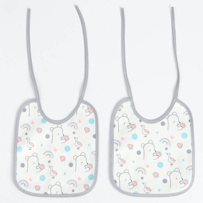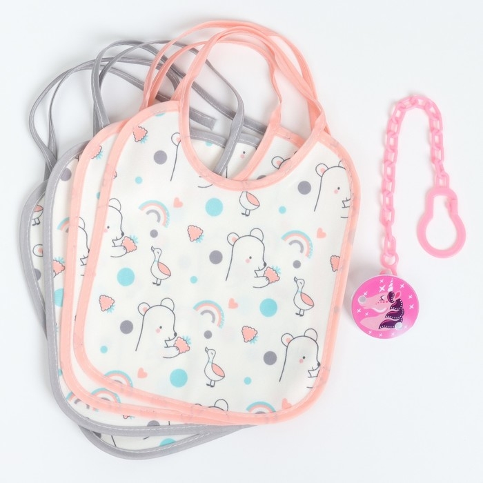 Набор детских слюнявчиков Крошка Я, 4 шт. + подарок, 20х17 см., цвет розовый, серый