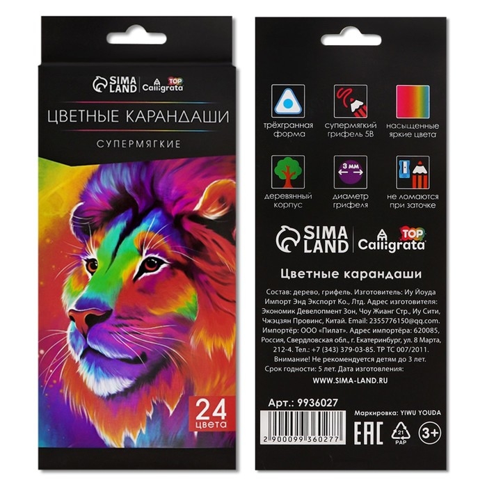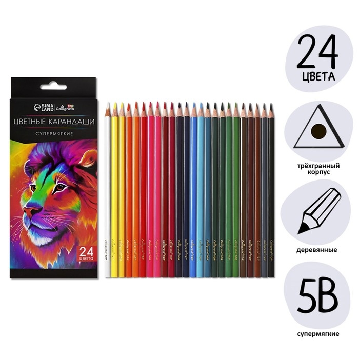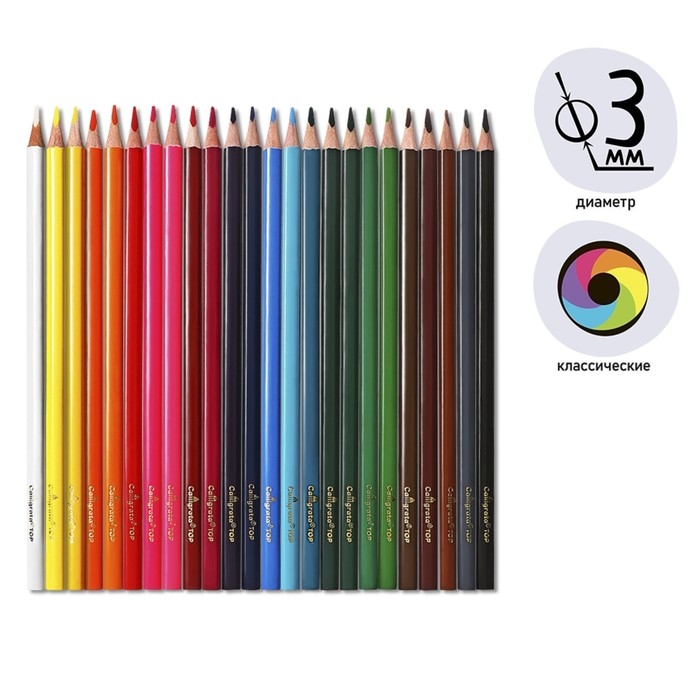 Карандаши 24 цветов TOP Calligrata, в картонной коробке, диаметр грифеля - 3мм, 5B
