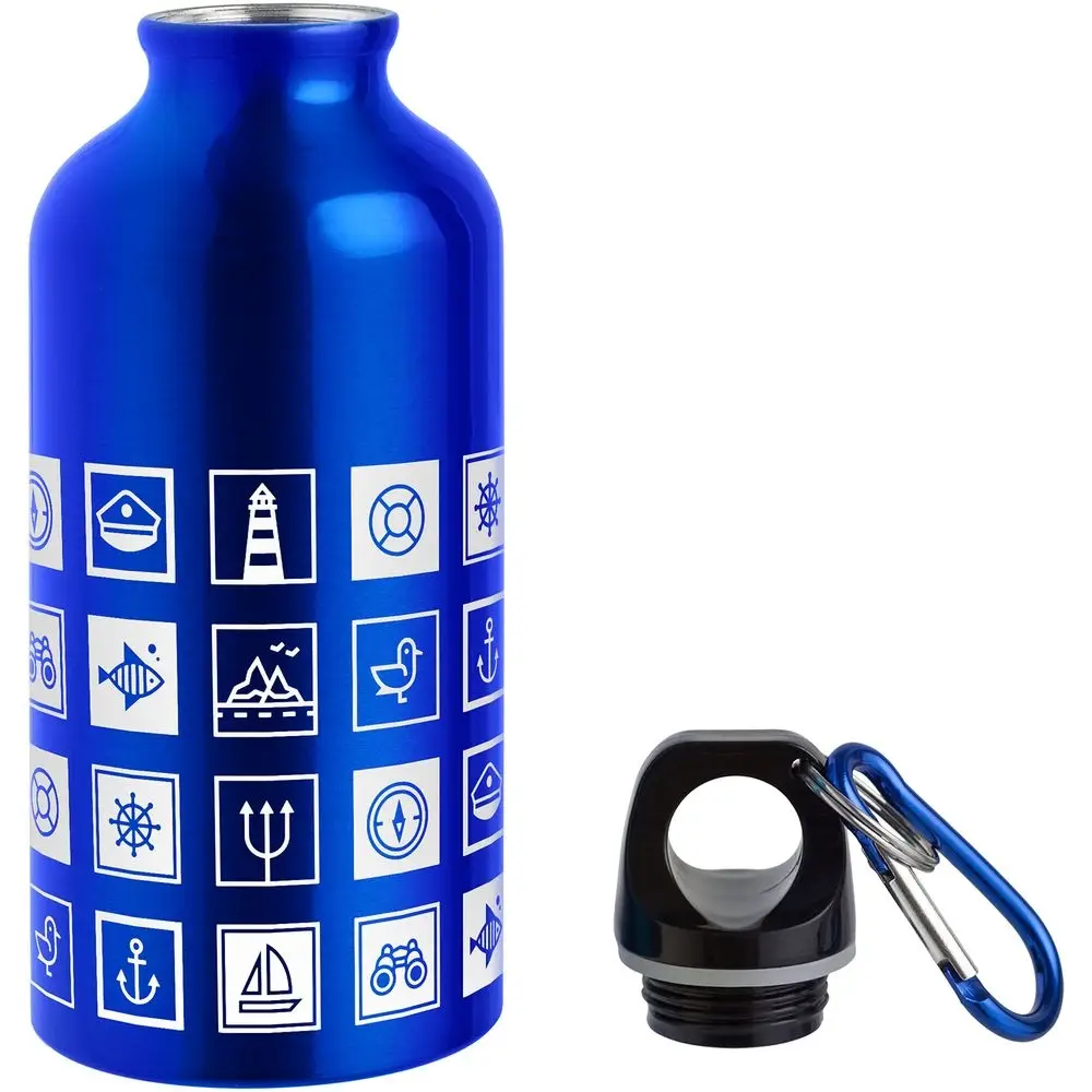 В каждой части общего рисунка изображены главные морские символы.Легкая и миниатюрная бутылка для воды с плотно завинчивающейся крышкой.