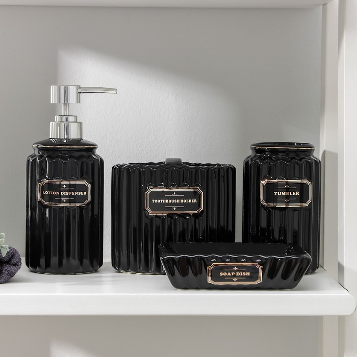 Набор аксессуаров для ванной комнаты «Классика», 4 предмета (дозатор 350 мл, мыльница, 2 стакана), цвет чёрный