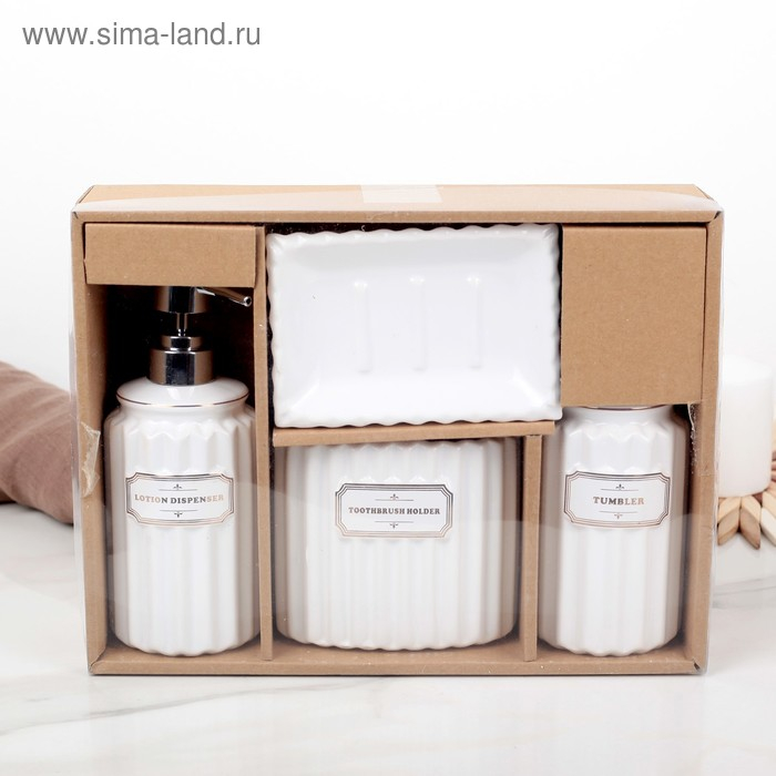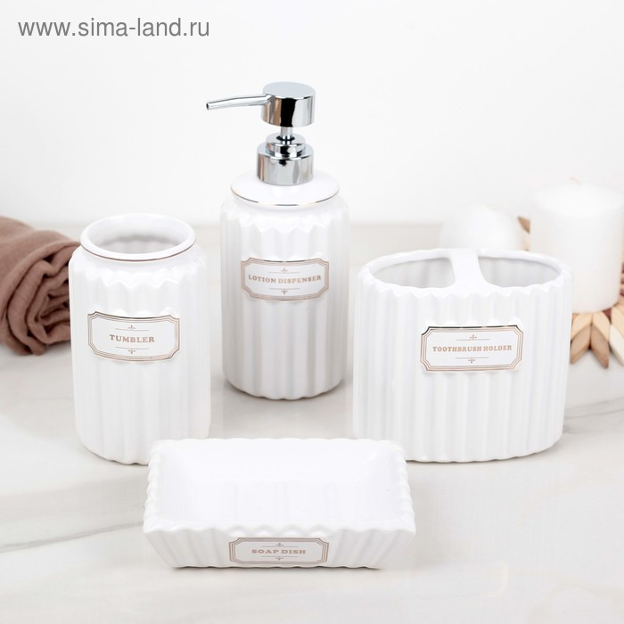 Набор аксессуаров для ванной комнаты «Классика», 4 предмета (дозатор 350 мл, мыльница, 2 стакана), цвет белый