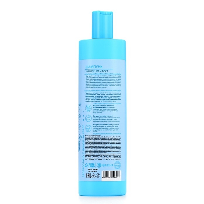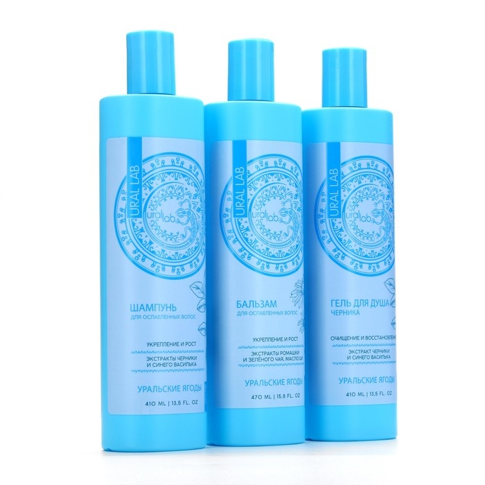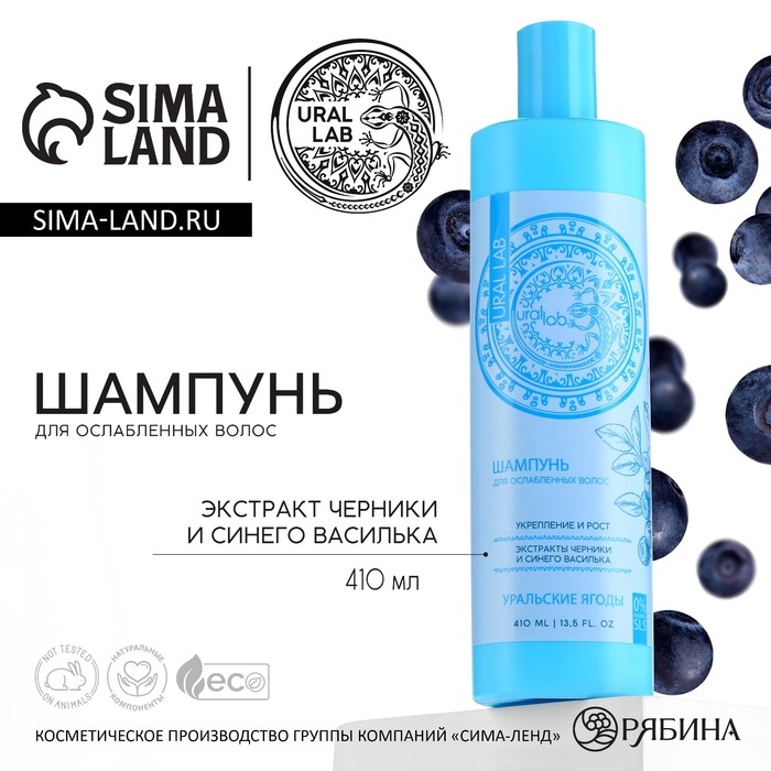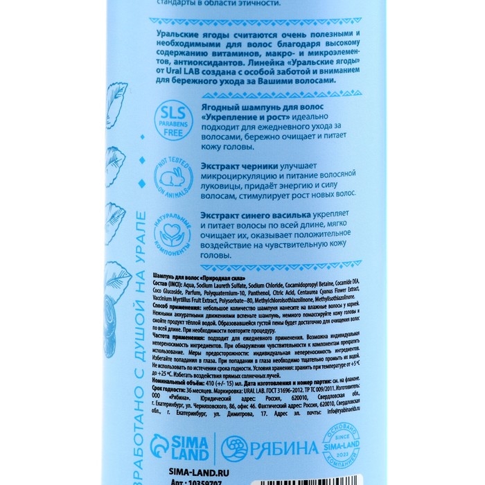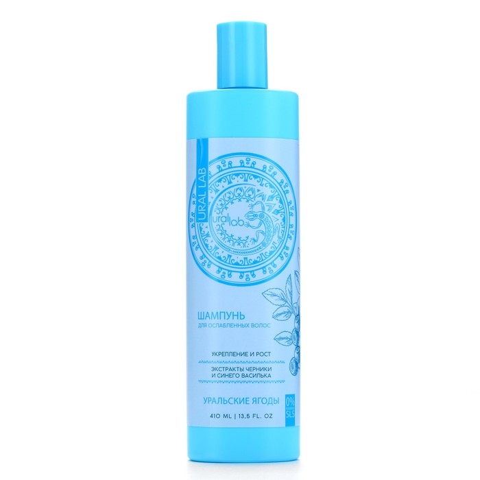 Шампунь для волос с экстрактом черники и василька, укрепление и рост, 410 мл, URAL LAB
