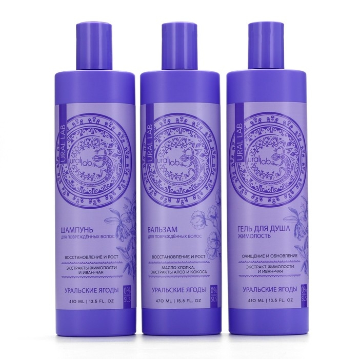 Шампунь для волос, с экстрактом жимолости и иван-чая, восстановление и рост, 410 мл, URAL LAB