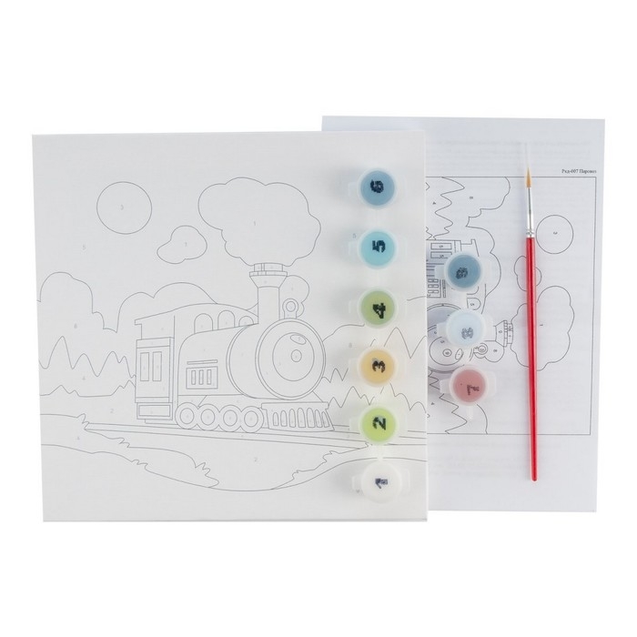 Картина по номерам детская «Паровоз», холст на подрамнике, 20 × 20 см