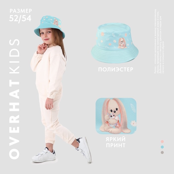 Панама детская для девочки «Зайка Лу», цвет голубой, р-р 54