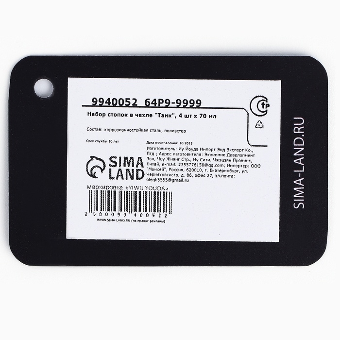Стопки, набор в чехле «Танк», 4 шт х 70 мл