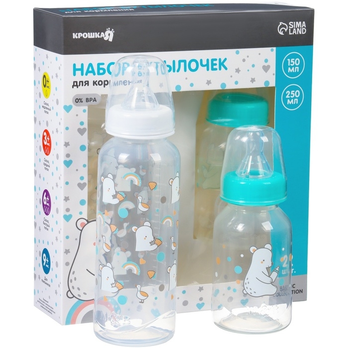 Набор бутылочек для кормления «Медвежонок» 150 и 250 мл, серия Basic, прямые, МИКС