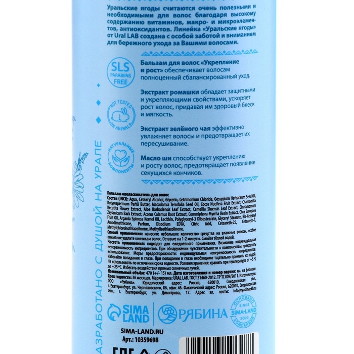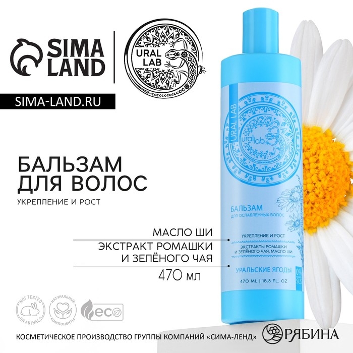 Бальзам для волос с экстрактом ромашки, зелёного чая и маслом ши, укреплеие и рост, 470 мл, URAL LAB
