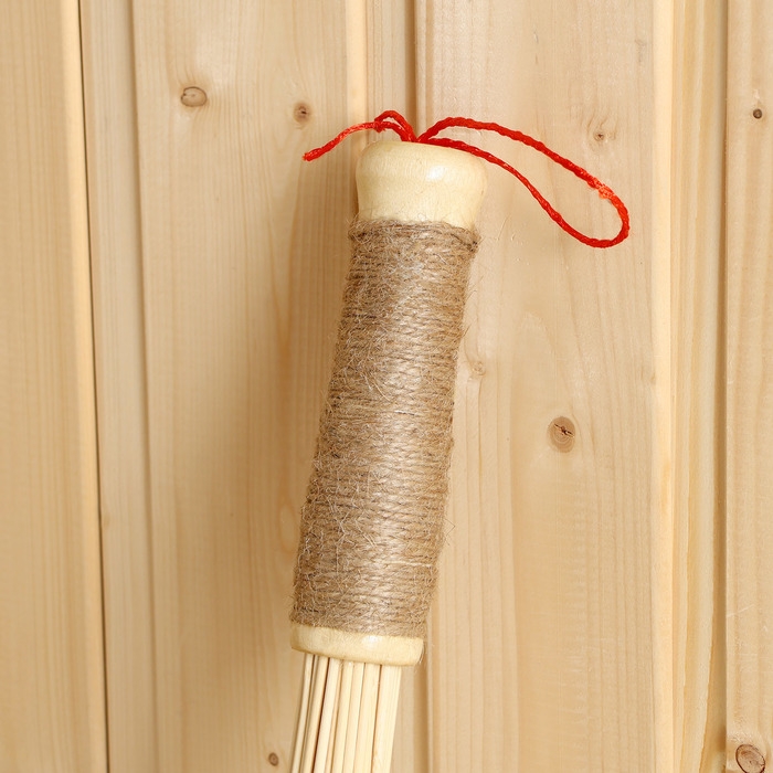 Веник массажный из бамбука для бани, 60 см, 0,2 см прут, джутовая ручка