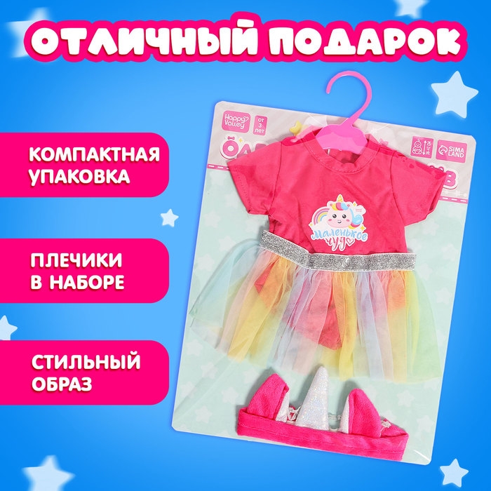 Одежда для пупсов «Единорожка», боди, юбка и повязка