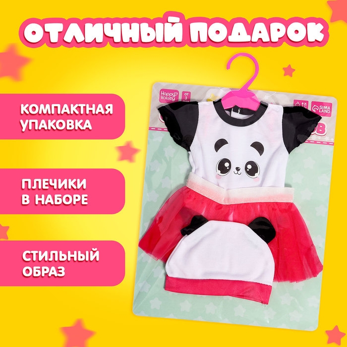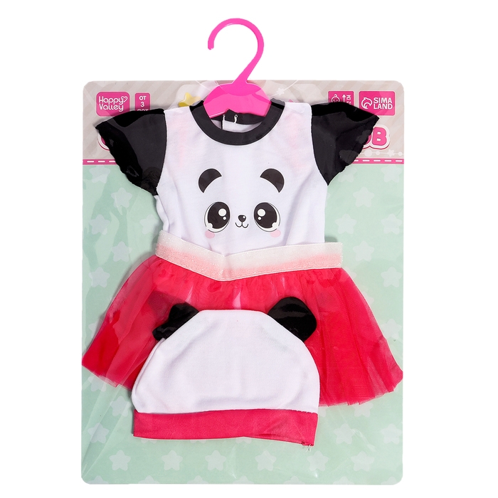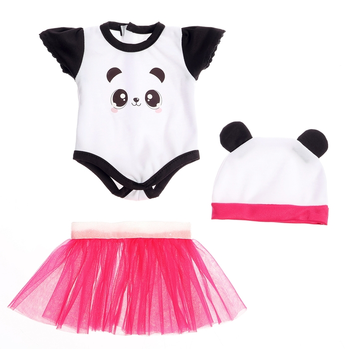 Одежда для пупсов «Панда», боди, юбочка и шапочка