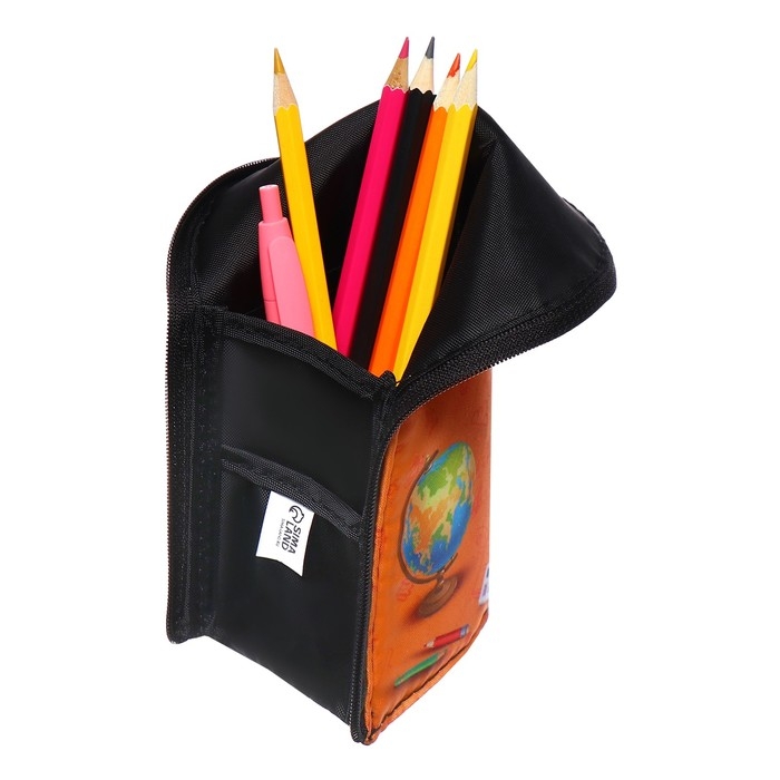 Пенал имеет оптимальный размер и вмещает в себя стандартный набор канцелярских принадлежностей для школы и творчества, в том числе линейку до 20 см.