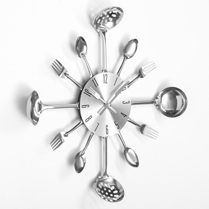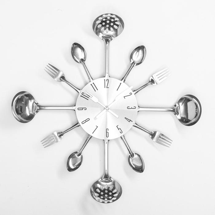 Часы настенные, серия: Кухня, "Вилки, ложки, поварешки", плавный ход, d-13 см, 30 х 30 см