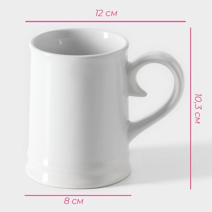 Кружка пивная керамическая Доляна, 300 мл, 12×8×10,3 см, цвет белый
