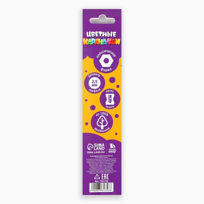 - Карандаши цветные, 6 цветов - 1 шт.;