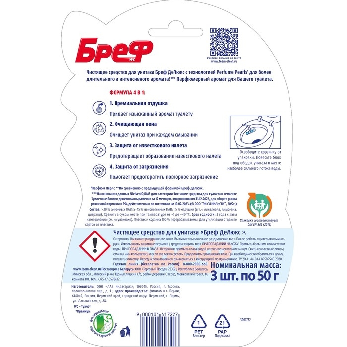 Бреф DeLuxe — подвесной туалетный блок для унитаза с технологией Перфюм Перлс для более длительного и интенсивного аромата!
