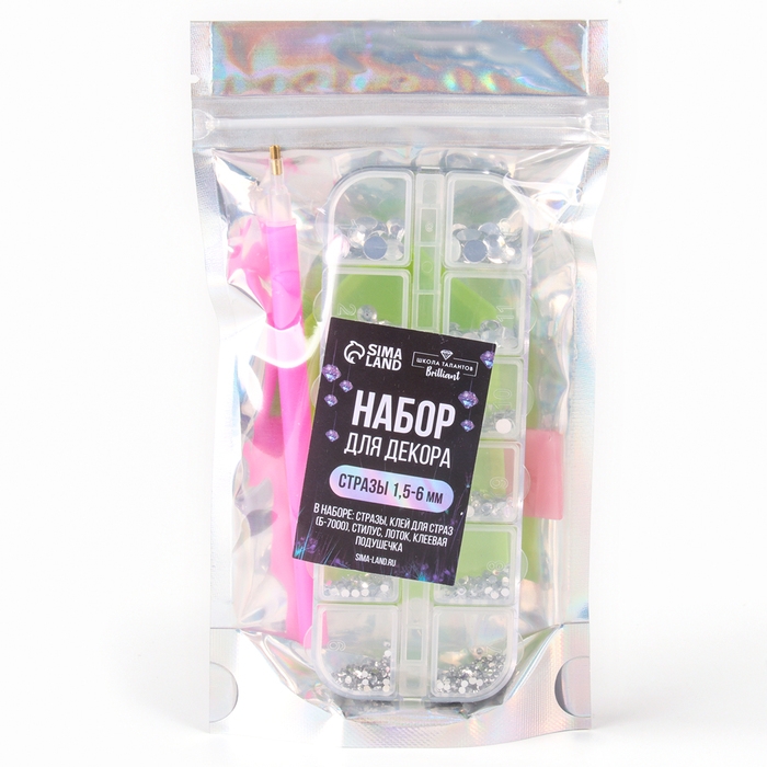 Стразы для творчества холодной фиксации с инструментами и клеем, цвет белый, размер от 1,5-6 мм, подходят для лица и ногтей