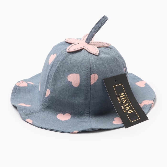 Панама для девочки MINAKU с сердечками, цвет синий, р-р 48