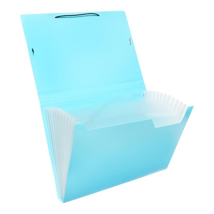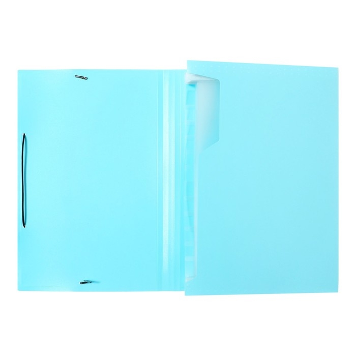 Папка картотека А4, Calligrata "Акварель", 13 отделений, пластиковая, 700 мкм, бирюзовая, резинка чёрная
