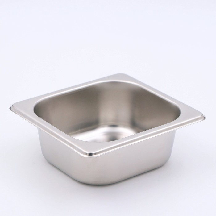 Гастроёмкость 1/6 из нержавеющей стали, 65 мм, 17,6×16,2×6,5 см, толщина 0,8 мм