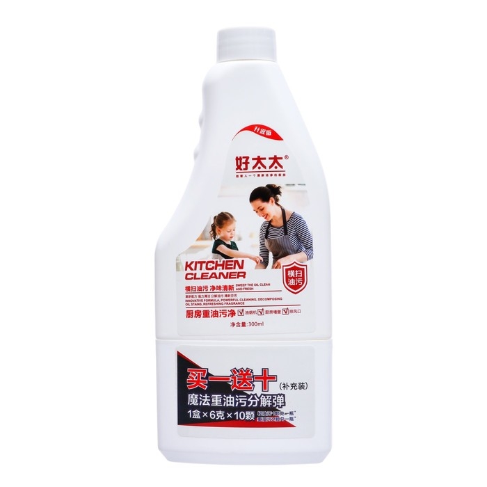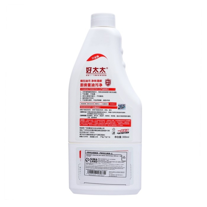 Средство обладает мощной формулой, которая легко справляется с жиром, копотью и другими загрязнениями. Оно идеально подходит для чистки плит, духовых шкафов, микроволновых печей, вытяжек и других кухонных поверхностей.
