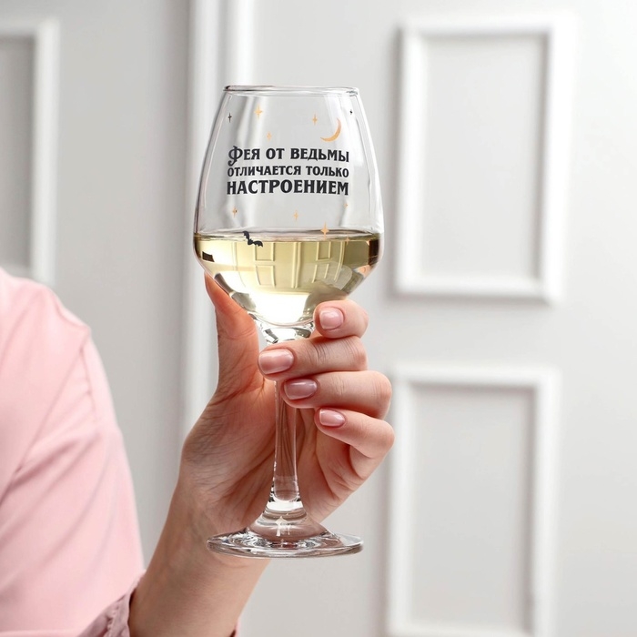 Бокал для вина "Фея от ведьмы отличается ..." 350 мл