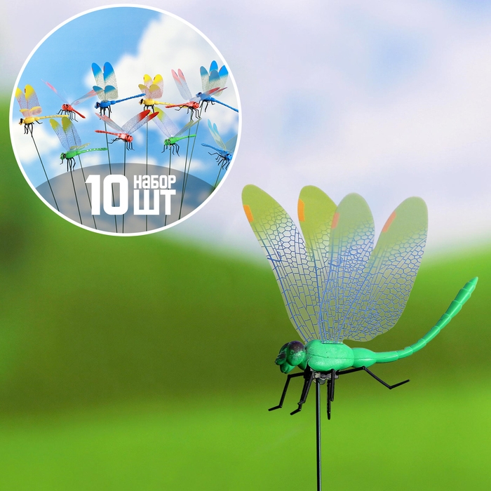 Штекер "Стрекоза Сенди" 14х9см/45см, набор 10шт, МИКС
