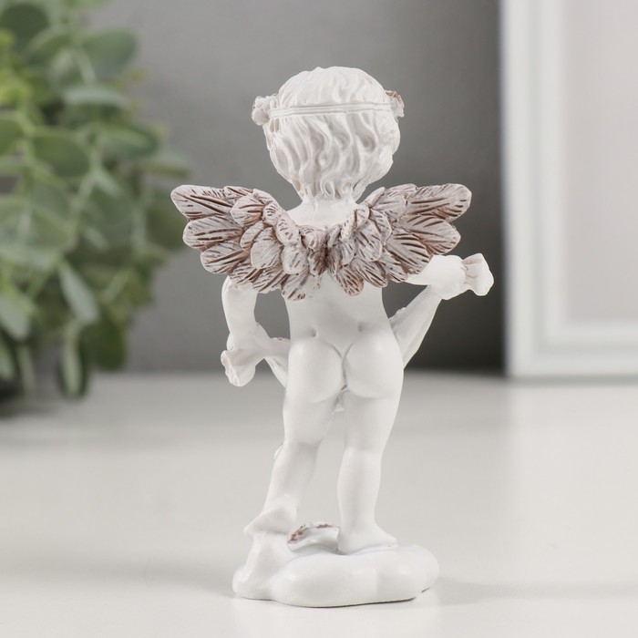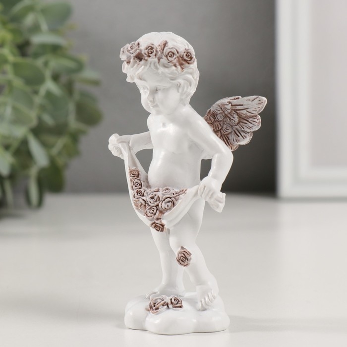 Сувенир полистоун "Ангелочек с лепестками роз" кофейный венок 6,5х4х10,5 см