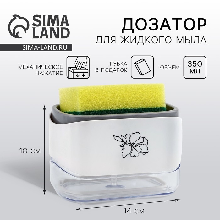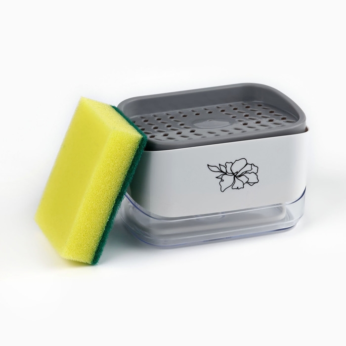 Дозатор для моющего средства кухонный «Цветок», с подставкой для губки, 14 х 10 см.