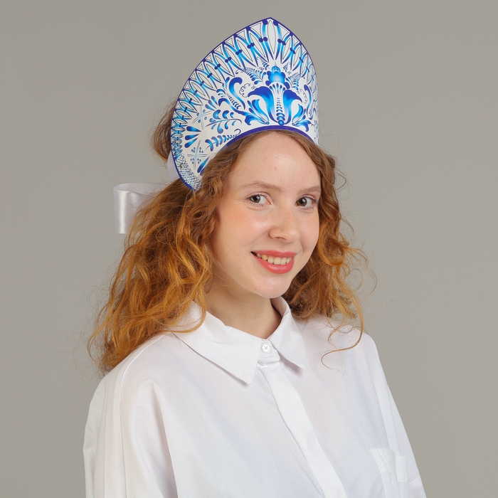 Кокошник «Голубые узоры на белом», картон, ламинат